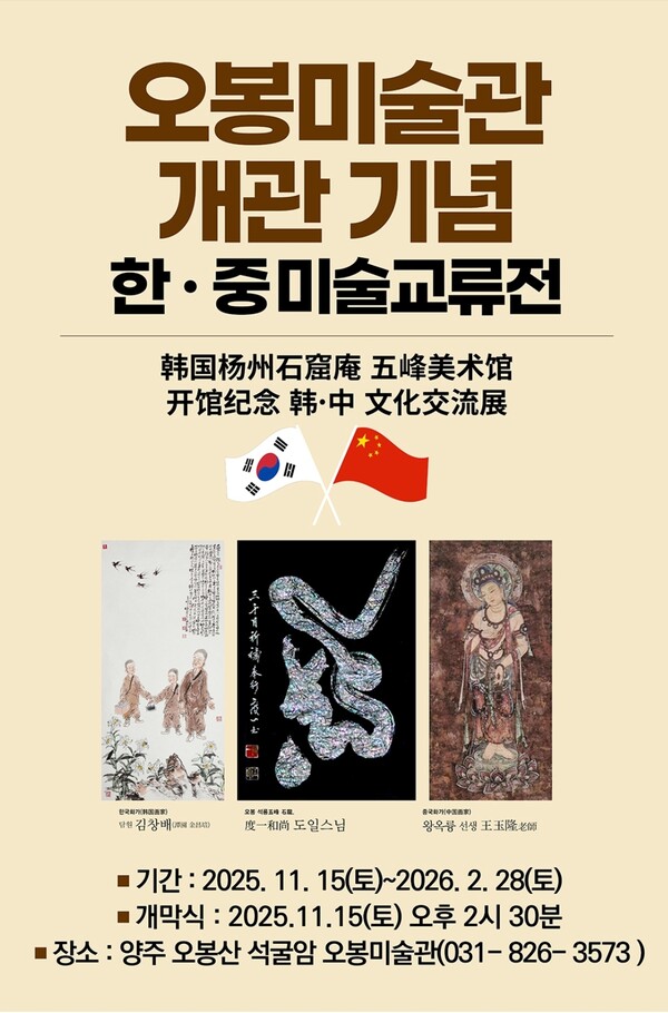15일부터 개관기념 전시 ‘한중 문화교류전’ 개막, 평안과 위안 줄 문화도량 기대