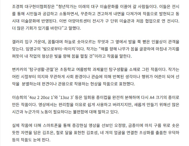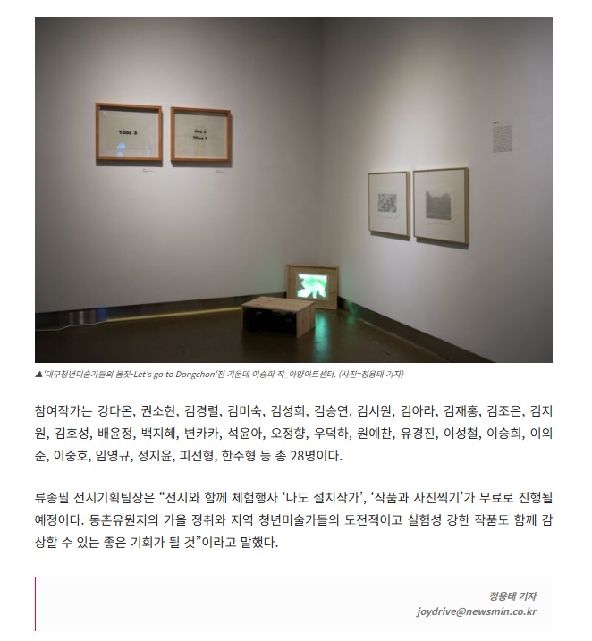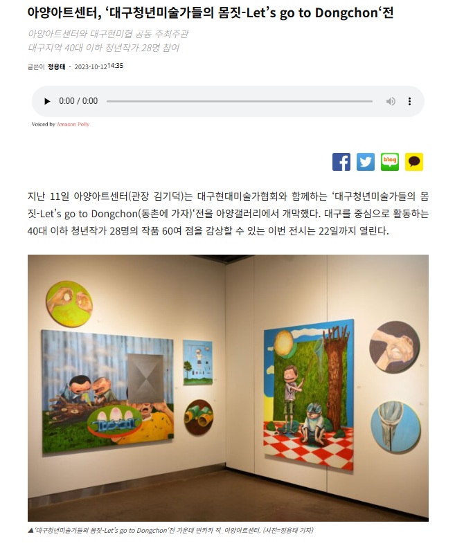 뉴스민2023.10.12/아양아트센터, ‘대구청년미술가들의 몸짓-Let’s go to Dongchon‘전