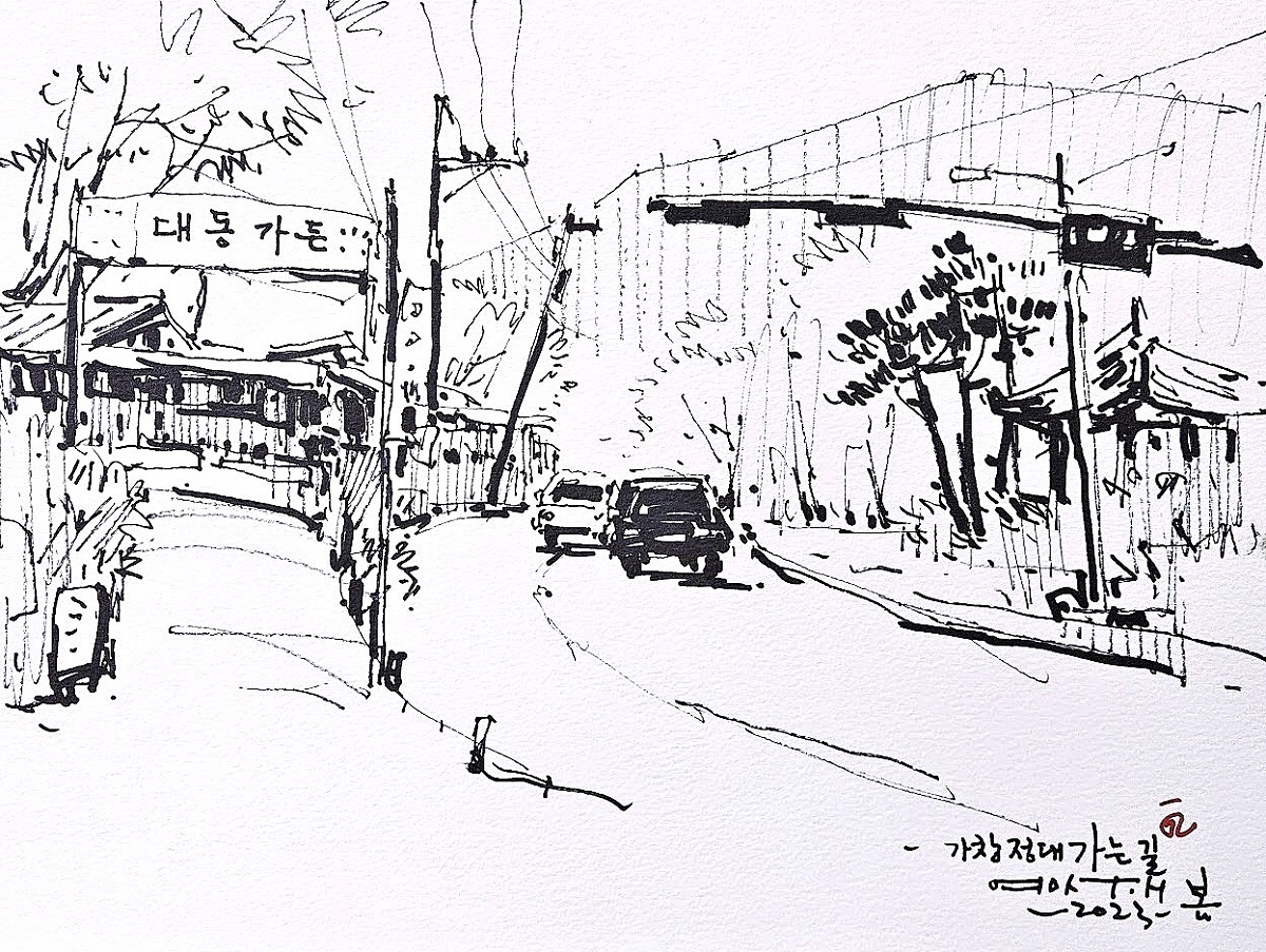 어반스케치-가창대동가든펜드로잉/종이에유성펜/8절/2024/일운한영수