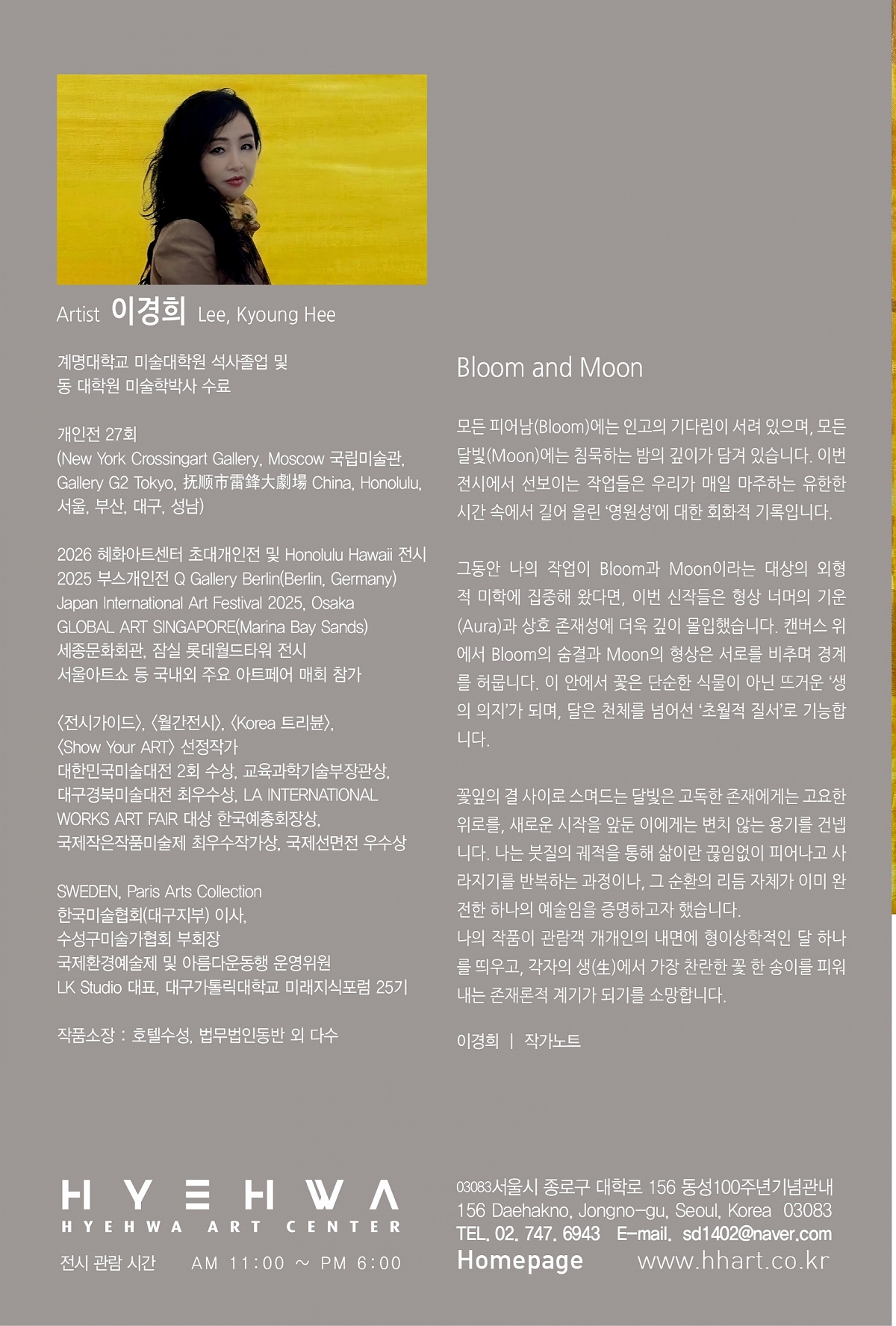 이경희 초대展 혜화아트센터 서울 2026.05.15 ~ 05.20 서울시 종로구 대학로 156