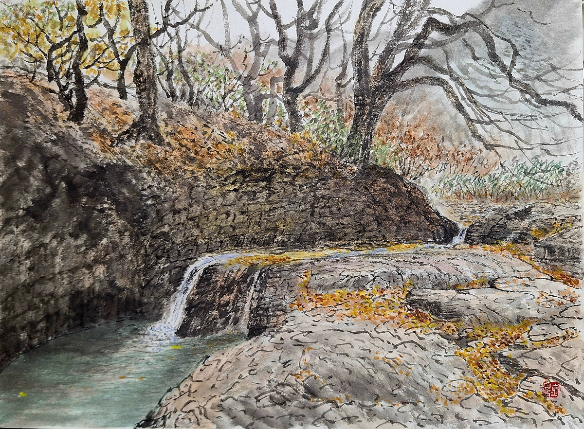 세심대의늦가을 45×33cm 지본 수묵담채 (2025대구미술제출품작)