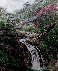 만휴정송암폭포 40×53cm 지본 수묵채색 2024