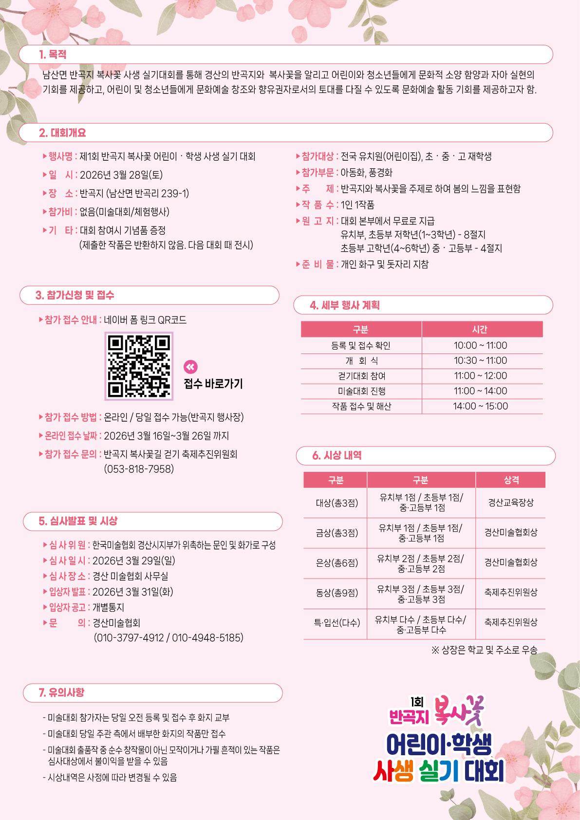 제1회 반곡지 복사꽃 어린이.학생 사생실기대회 제10회 경산반곡지 복사꽃길 걷기행사