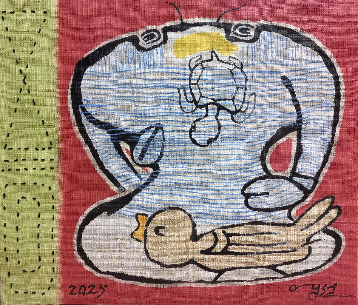 아리랑.삼베.수묵.아크릴채색.실.45x53cm(10호).2025