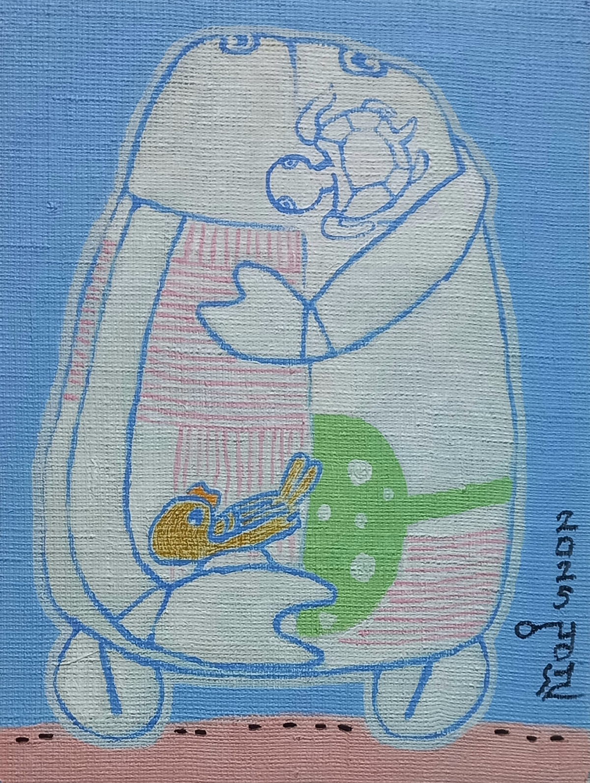 아리랑. 한지.삼베.아크릴채색.실.24x33cm(4호).2025