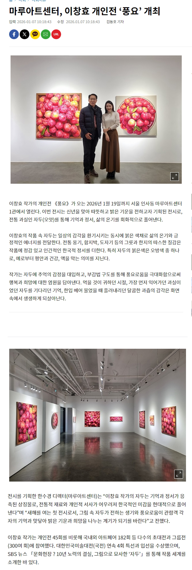 서울경제 기사 마루아트센터, 이창효 개인전 ‘풍요’ 개최