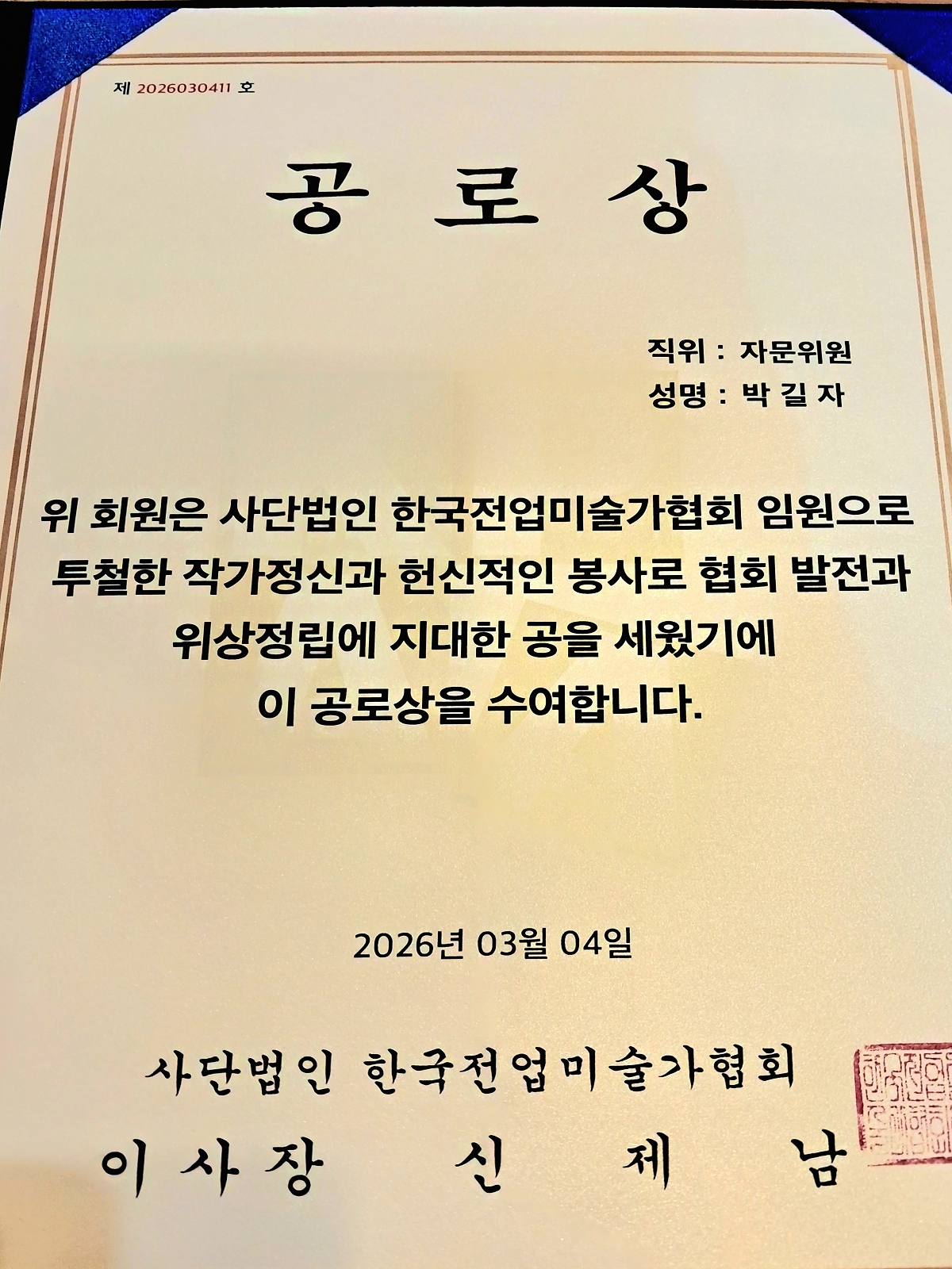 2026 (사)한국전업미술가협회 공로상
