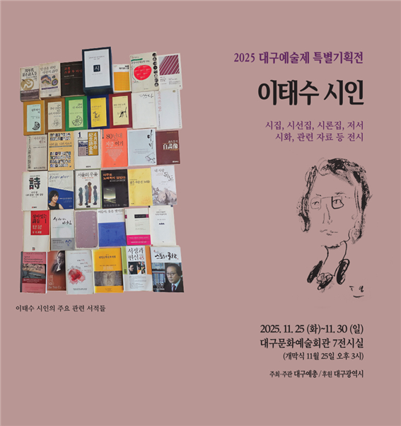 대구예총이 주최·주관하고 대구시가 후원하는 ‘2025 대구예술제 특별기획 이태수 시인전’이 25일부터 30일까지 대구문화예술회관 7전시실에서 개최된다. 개막식은 25일 오후 3시.