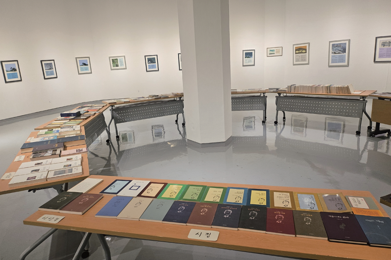 『그림자의 그늘』 『우울한 비상의 꿈』 『물 속의 푸른 방』 『안동 시편』 『침묵의 결』 『마음의 길』 등 총 23권의 시집과 3권의 시선집, 6권의 시론집을 포함해 저서, 평론집, 관련 서적 50여 권, 주요 문학상 상패와 해외 활동 자료 등 작가의 삶과 문학적 사유가 녹아 있는 기록들이 이번 시인전에서 대거 공개되었다.