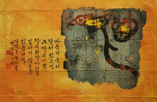 그래도 무언가 충족되지 못했던 한부분_아무리 바쁜 일상생활에서도 내가 좋아서 평생의 반려자처럼 함께 했던 서예를 새로이 변모시키고 싶은 작가로서의 원초적인 욕구가 늘 마음 저변에서 출렁이고 있었던 것이다.