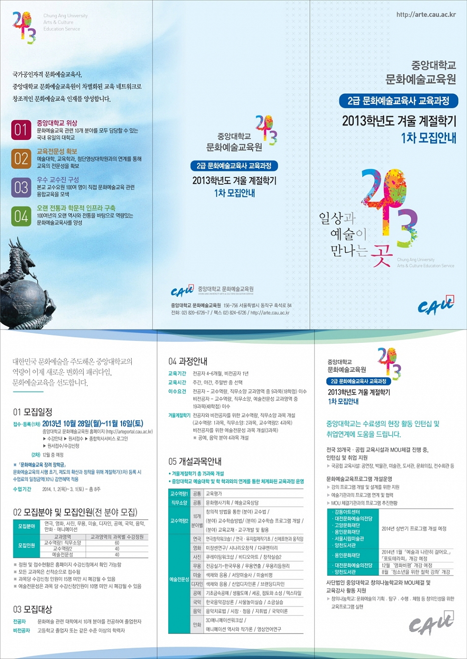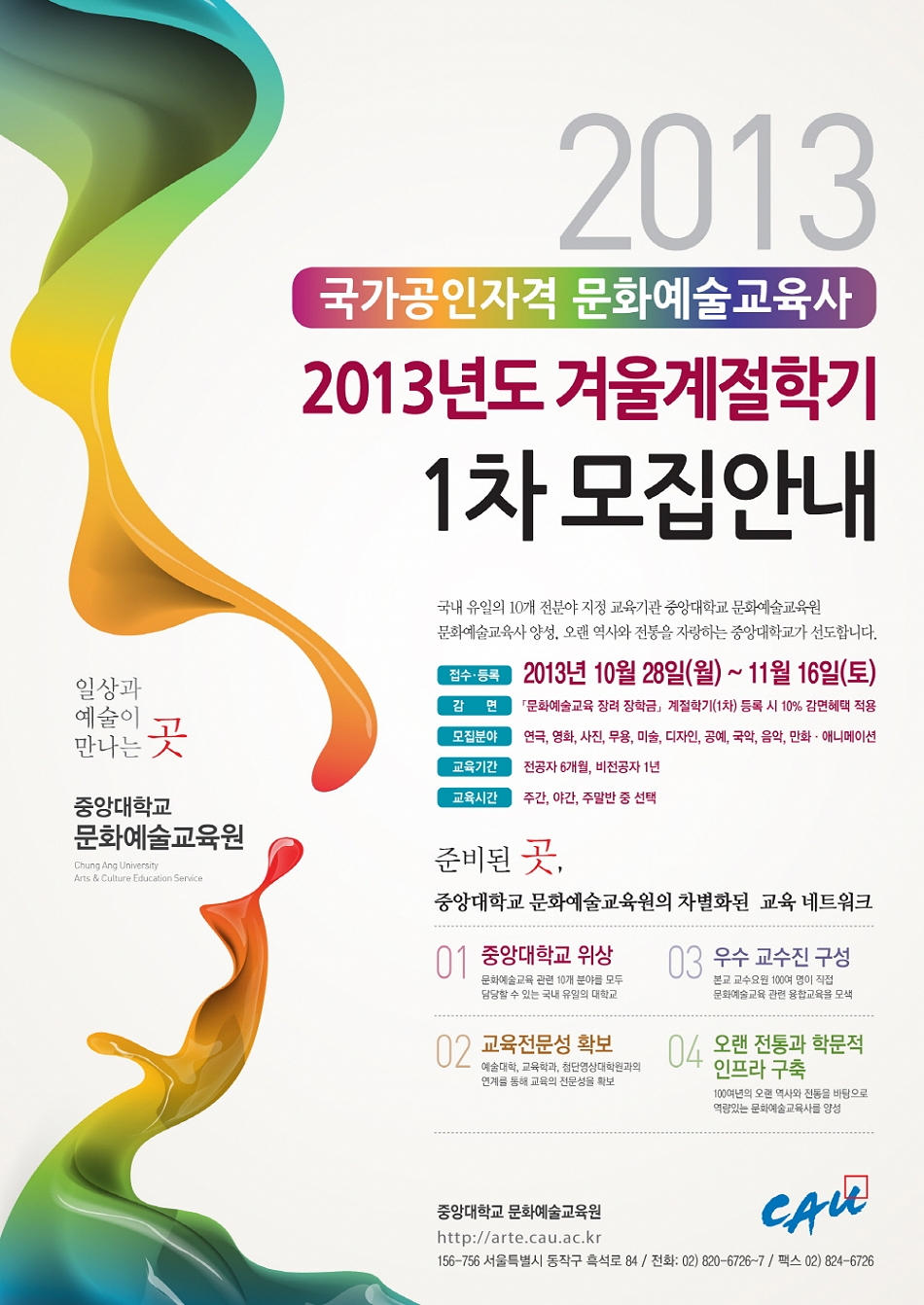 [국가공인인증 문화예술교육사] 중앙대학교 문화예술교육원 2013-겨울계절학기(1차) 모집안내