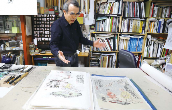 서울 종로구 인사동 작업실에서 만난 담원 김창배 화백(박사)은 한지를 한 장 한 장 펼쳐 보일 때마다 그윽한 미소를 지어보였다. 그의 붓끝에서 서서히 우러나는 묵향 같은 그림들은 세상의 빛을 받아 나아갈 준비를 하고 있었다.