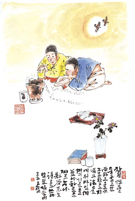‘또르르~’ 연구실에 찻내음이 은은하게 퍼진다. 차를 따르는 그의 섬세한 움직임에 시선이 머문다. 괜스레 마음이 평온해진다. 그는 평소 연구실을 찾는 이들에게 차 한 잔을 건넨다. 차와 그림은 그의 일상이고 전부였다. 그는 차를 좋아해 차마시는 풍경을 그림으로 표현해왔다. <차묵화첩> <차 한잔의 인연> <그림찻방> <차 한잔의 명상> 등 지난 30년간 총 29권의 저서를 냈다. 이중 <차 한잔의 풍경>은 베스트셀러가 되어 많은 사랑을 받았다.