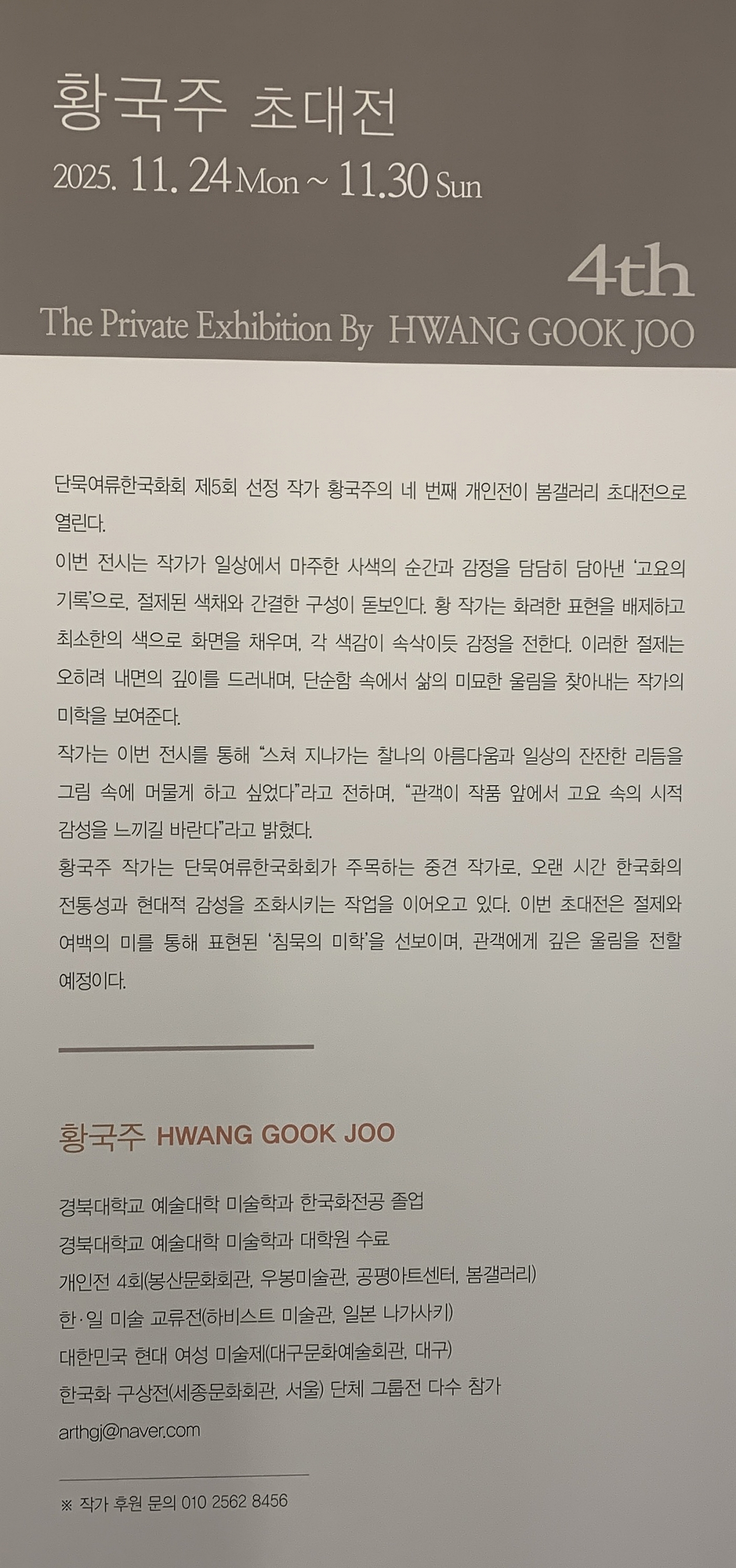 25년선정작가전 황국주초대전 2025.11.24~11.30 봄갤러리