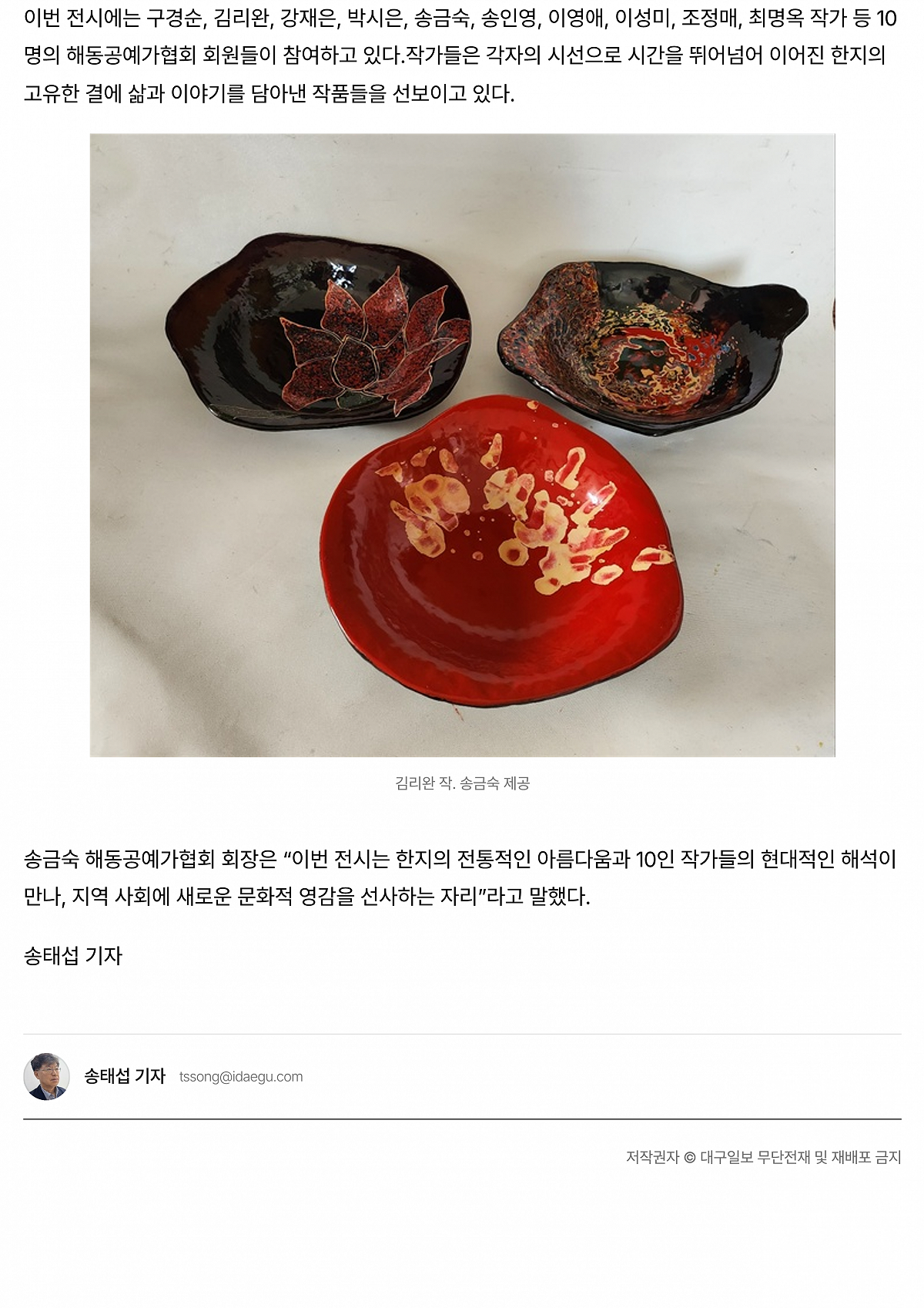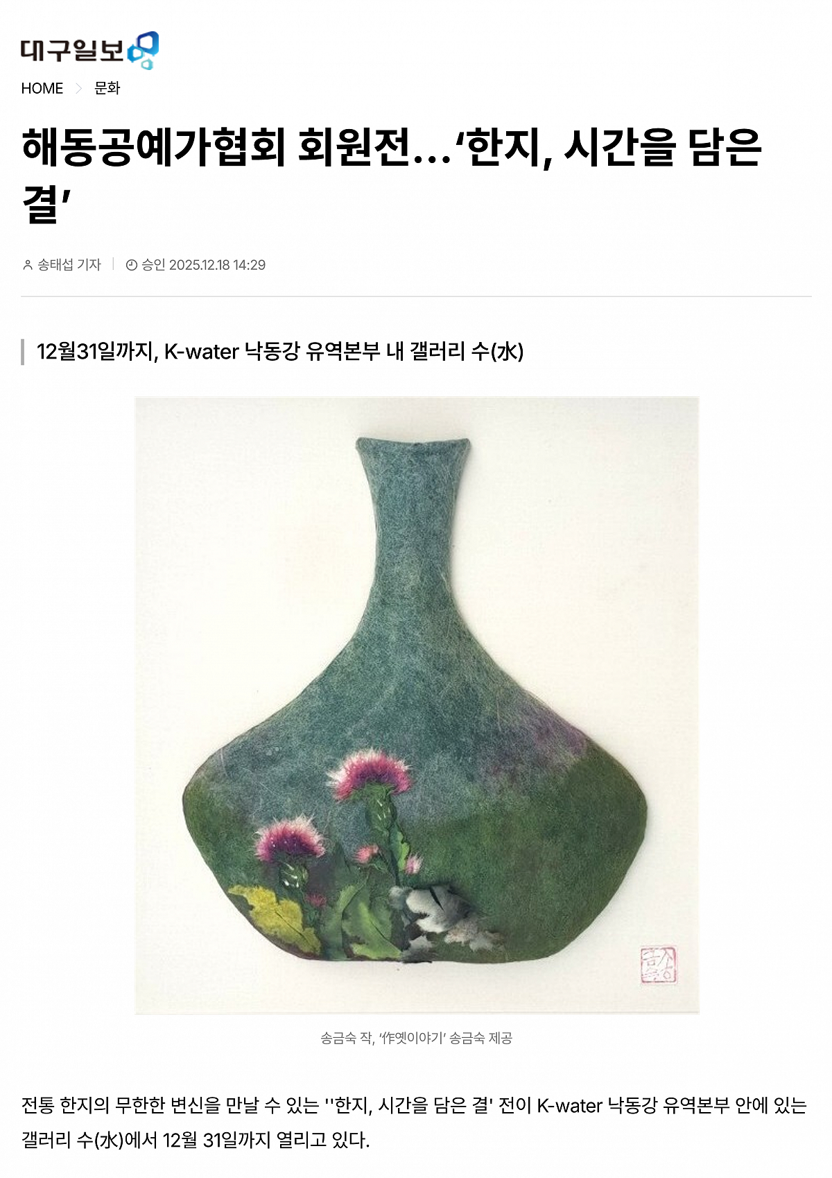 [대구일보] 해동공예가협회 회원전…‘한지, 시간을 담은 결’