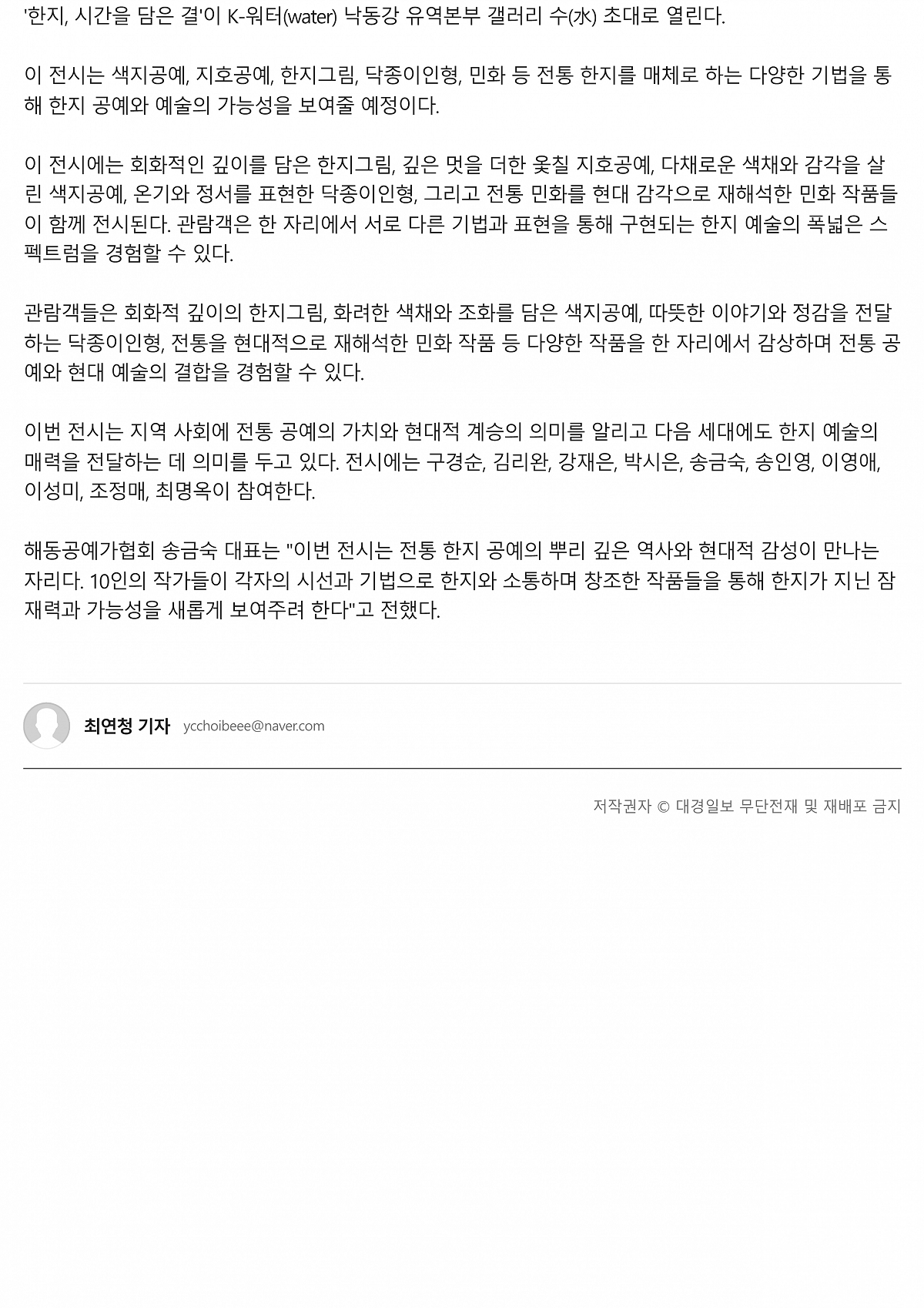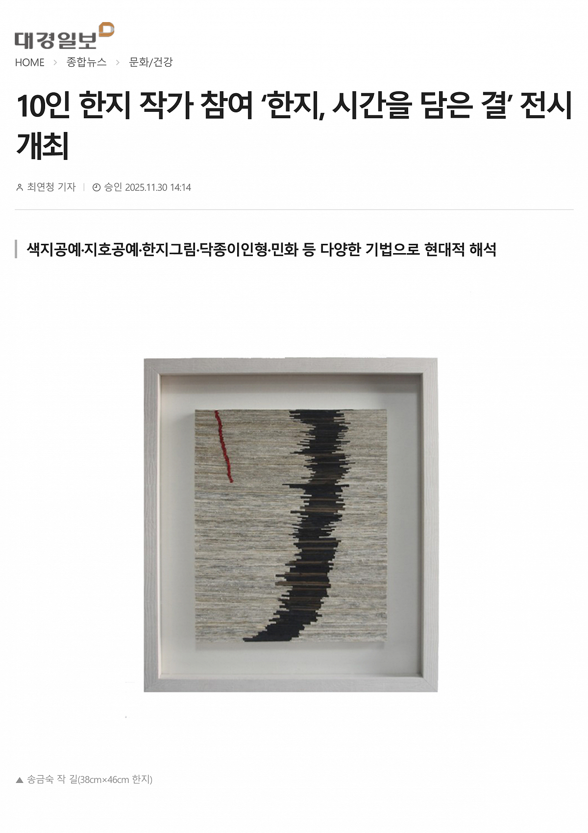 [대경일보] 10인 한지 작가 참여 ‘한지, 시간을 담은 결’ 전시 개최