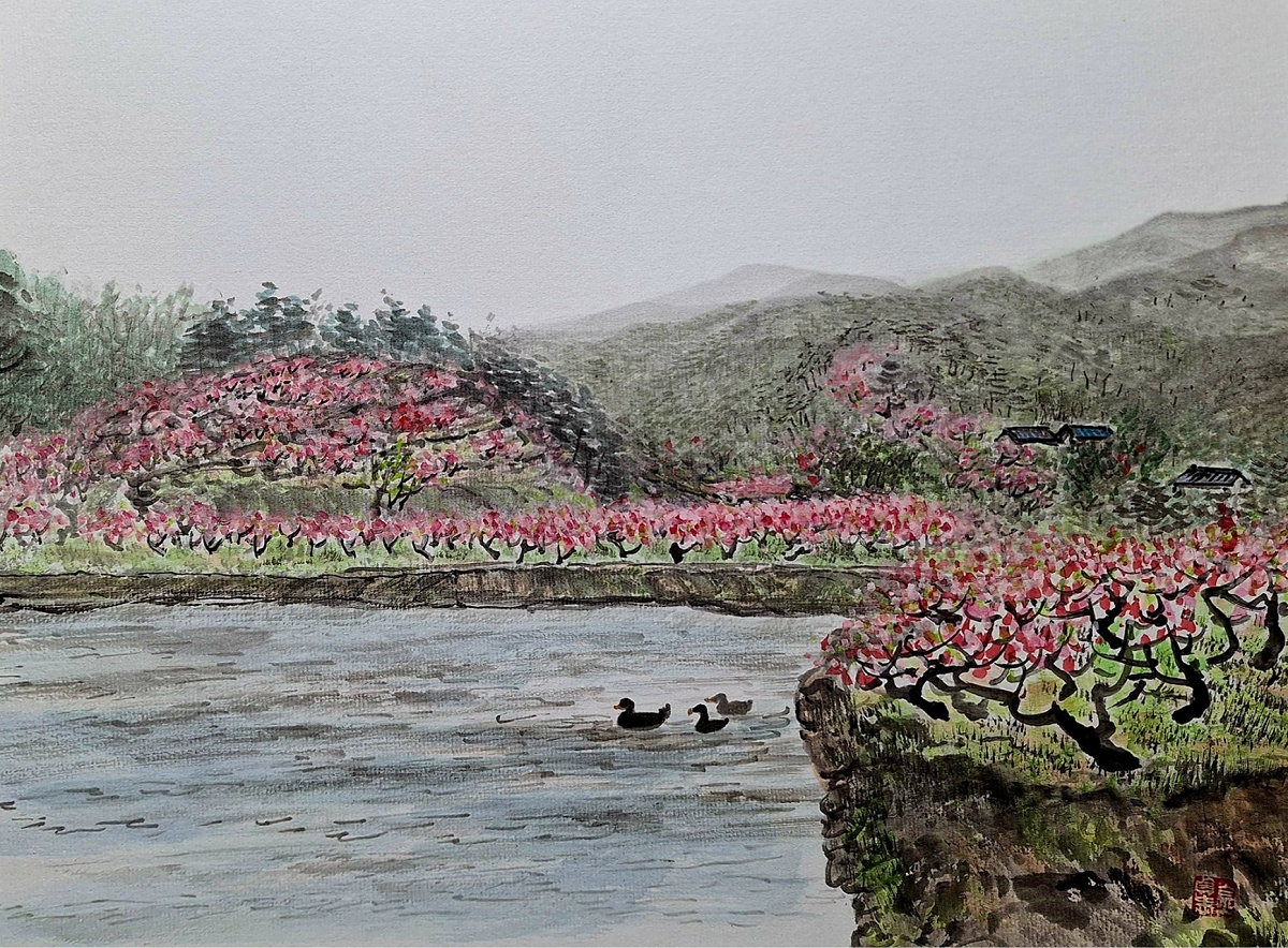 봄날의정원41×31cm두방지수묵담채2026