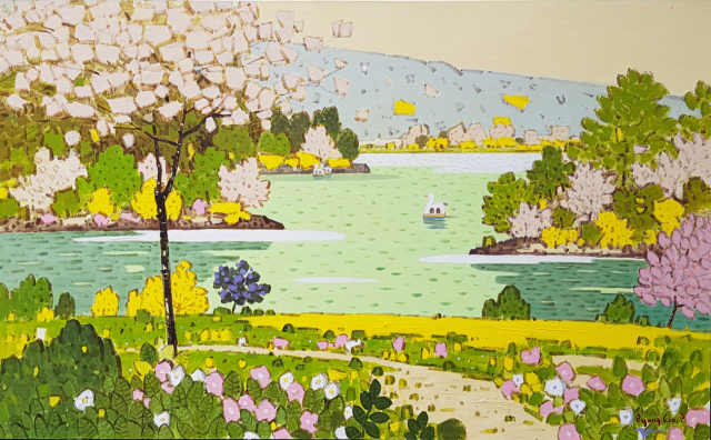 박병구, 수성못-기억, Acrylic on Canvas, 90x145cm.