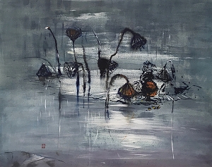 蓮 mixed on paper..