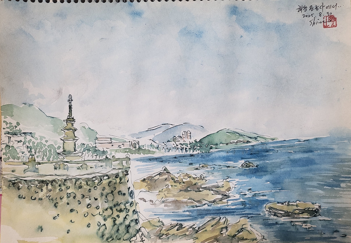 해동용궁사에서,38X24cm,종이 수묵담채, 2025