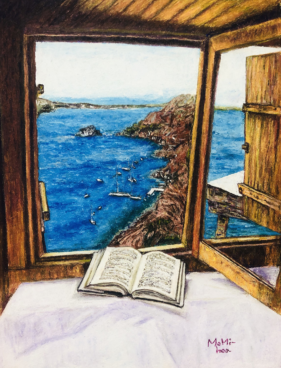 바다와 창 -116.8 x80.3cm -oilpastel on arches paper -2020