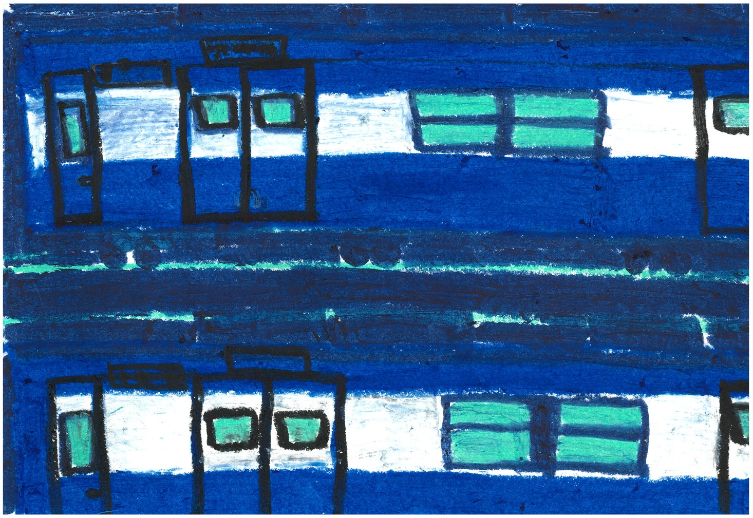 달리고 있는 1호선 전철의 모습을 360도 VR카메라로 찍은 뒤 2D의 모습으로 표현한듯한 작가의 상상력은 놀라움의 연속이었습니다. 아마 19세기 말 모더니즘 미술을 처음 접한 사람들이 느꼈을만한 신선한 충격의 작품이었습니다.