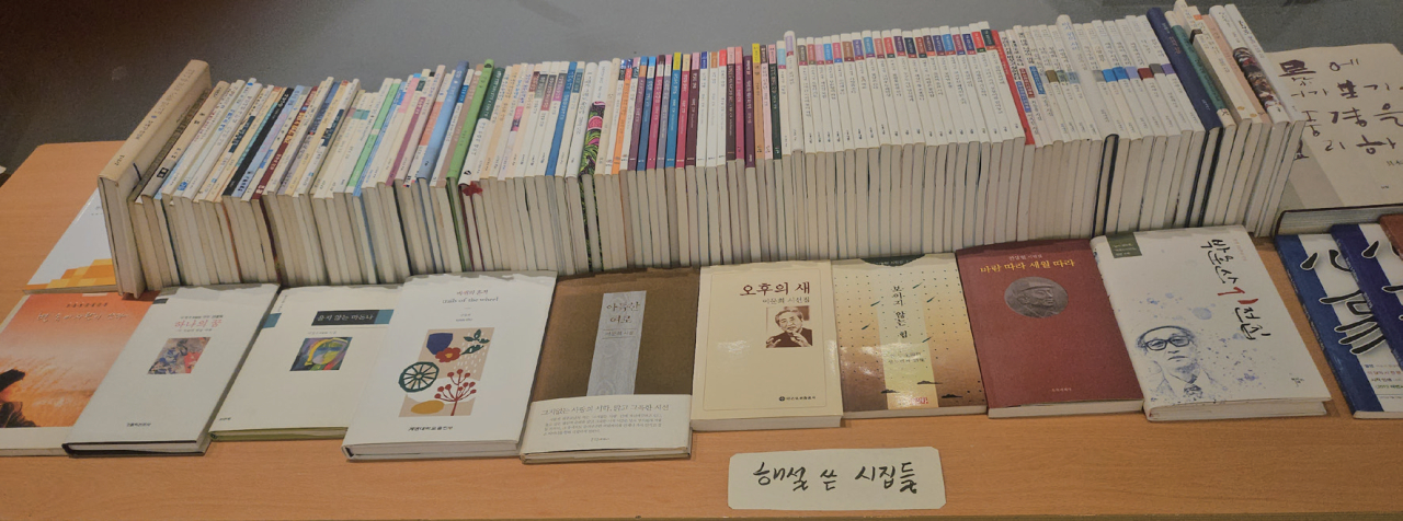 『그림자의 그늘』 『우울한 비상의 꿈』 『물 속의 푸른 방』 『안동 시편』 『침묵의 결』 『마음의 길』 등 총 23권의 시집과 3권의 시선집, 6권의 시론집을 포함해 저서, 평론집, 관련 서적 50여 권, 주요 문학상 상패와 해외 활동 자료 등 작가의 삶과 문학적 사유가 녹아 있는 기록들이 이번 시인전에서 대거 공개되었다.